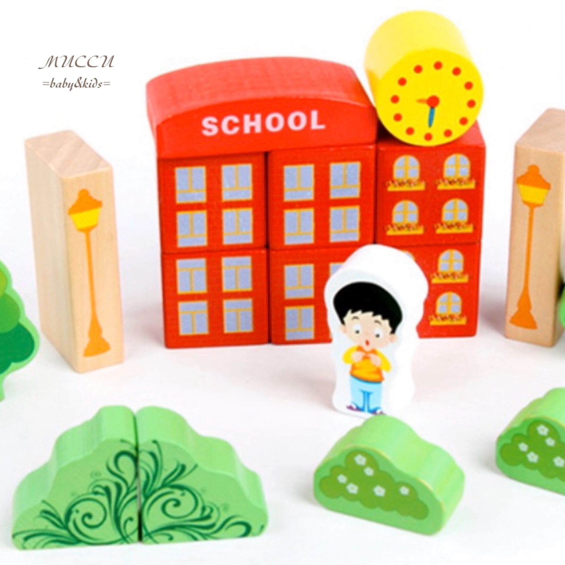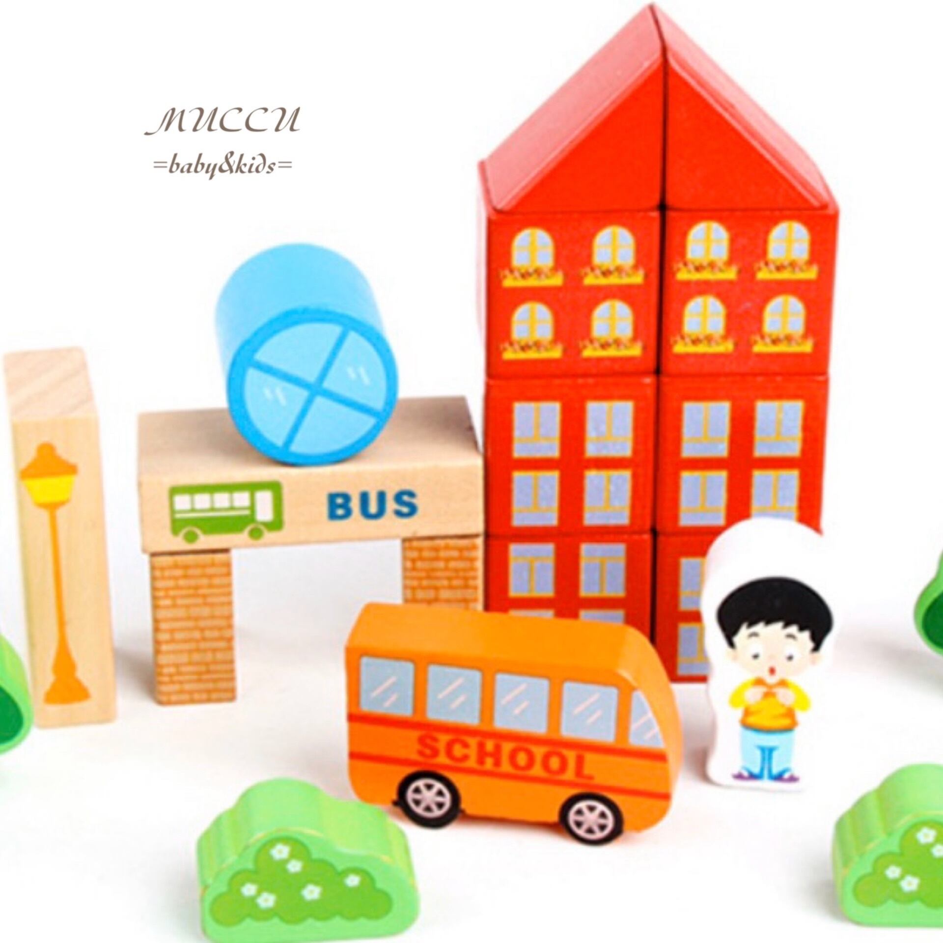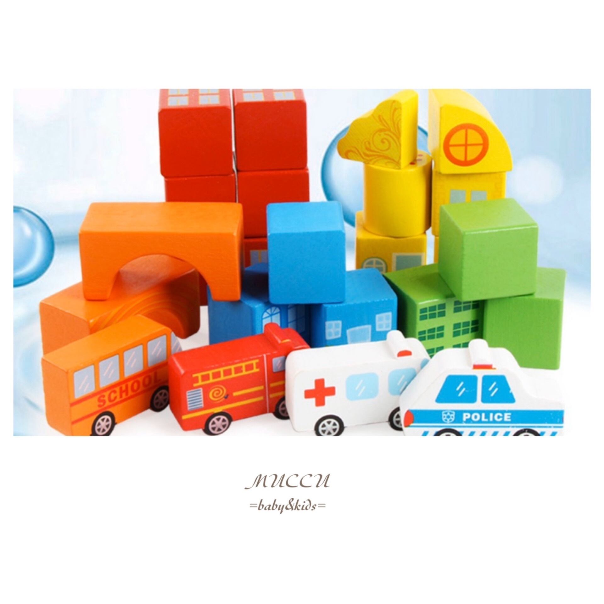 送料無料!【予約販売】知育玩具〜楽しく学ぶ〜 100ピース 木製 ビルシティ 交通 幾何学形状 組み立て 積み木 早期教育! 集中力が養える! 出産祝い プレゼント | MUCCU =baby&kids=