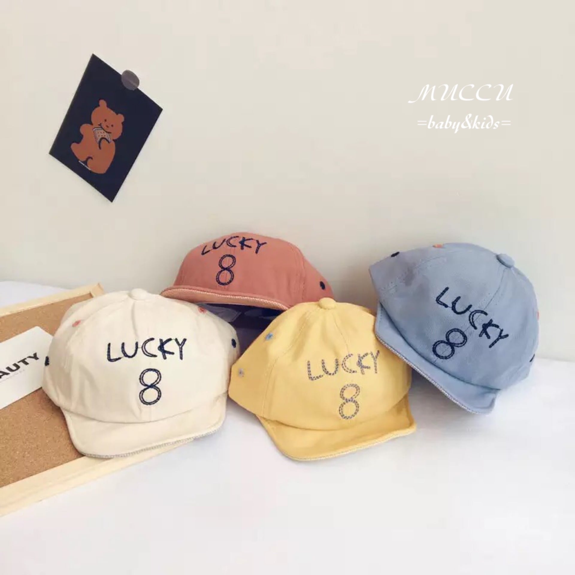 送料無料!【予約販売】可愛いロゴ入り♪ スマイル キャップ 帽子 46cm〜48cm 男の子 女の子 兄弟 姉妹 双子 赤ちゃん 出産祝い マジックテープ ベビー帽子 | MUCCU =baby&kids=