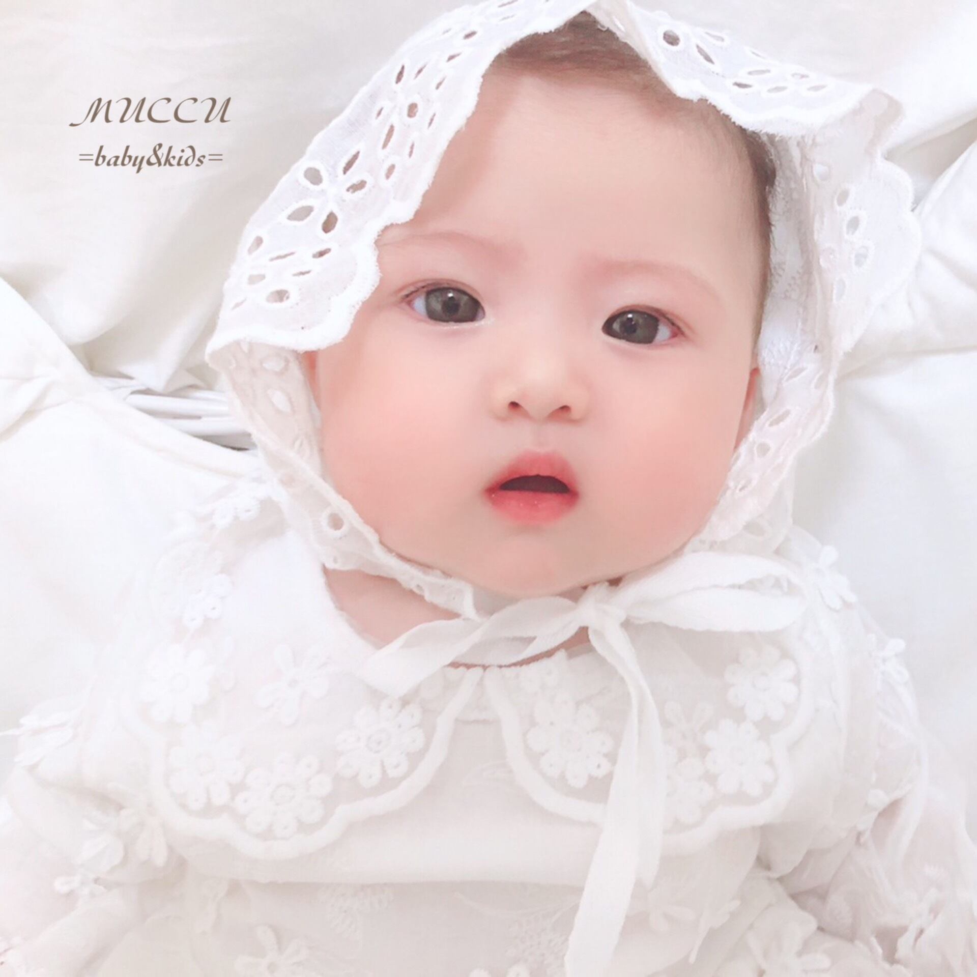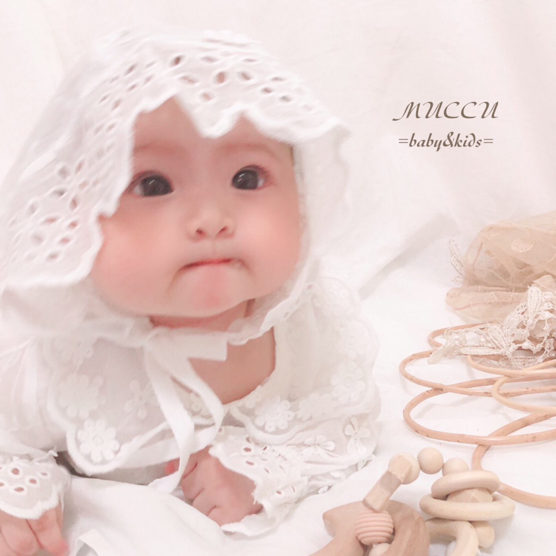 送料無料!【予約販売一部即納】大切な日に♡ レース ドレス ロンパース + レースボンネット セット 66cm〜100cm お宮参り ハーフバースデー 100日祝い お誕生日 退院着 お出掛けコーデ 結婚式 | MUCCU =baby&kids=