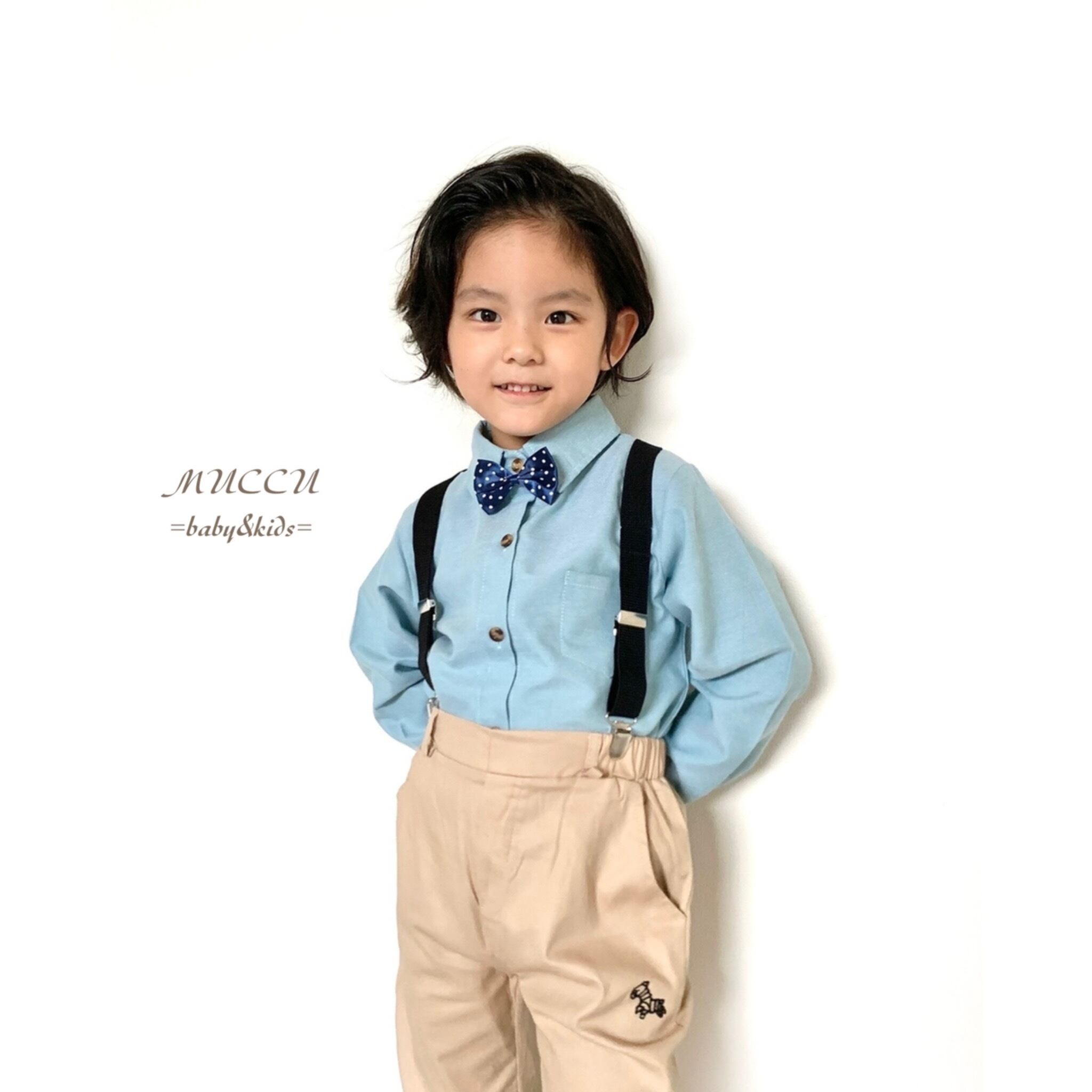 送料無料!【予約販売】様々なシーンで大活躍! 蝶ネクタイ付きシャツ + サスペンダー付きパンツ セット 90cm〜130cm 男の子 兄弟 双子 結婚式 リングボーイ 発表会 フォーマル | MUCCU =baby&kids=