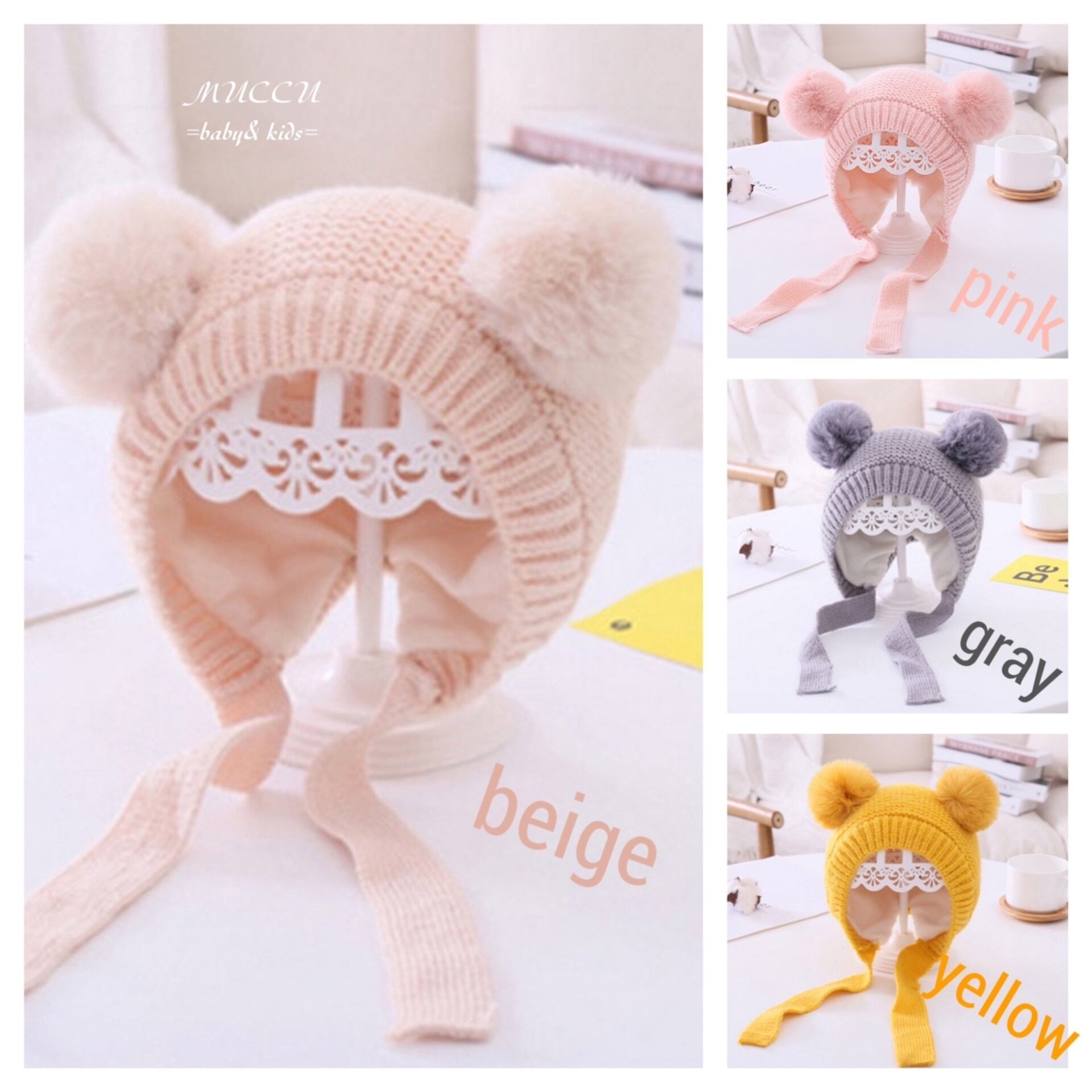 送料無料【予約販売】!可愛いすぎる ポンポン お耳 ニット 帽子 頭囲46cm〜50cm (1歳〜5歳) 女の子 姉妹 双子 ペアコーデ 赤ちゃん キッズ お出掛けコーデ ハロウィン | MUCCU =baby&kids=