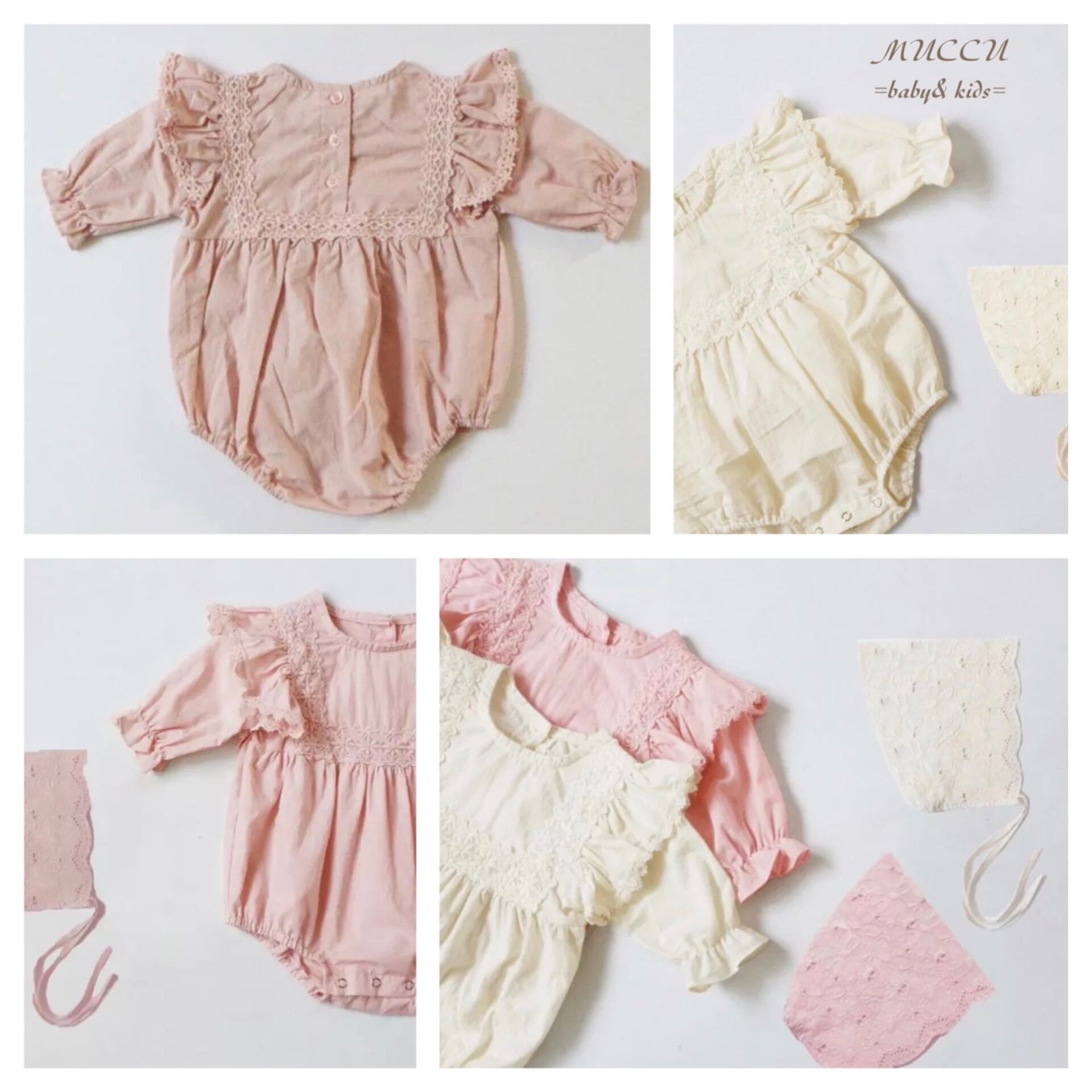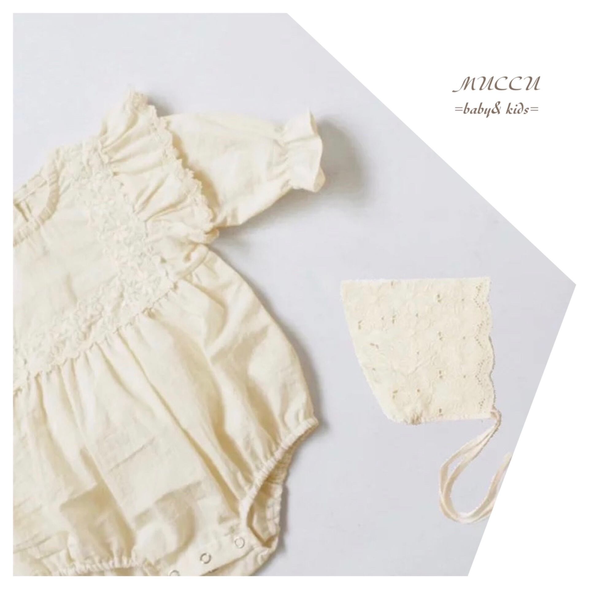 送料無料!【予約販売】可愛いが詰まったセット♡ レース フリル ロンパース + ボンネット 66cm 〜90cm 赤ちゃん 女の子 姉妹 双子 お誕生日 ハーフバースデー 結婚式 お出掛けコーデ | MUCCU =baby&kids=