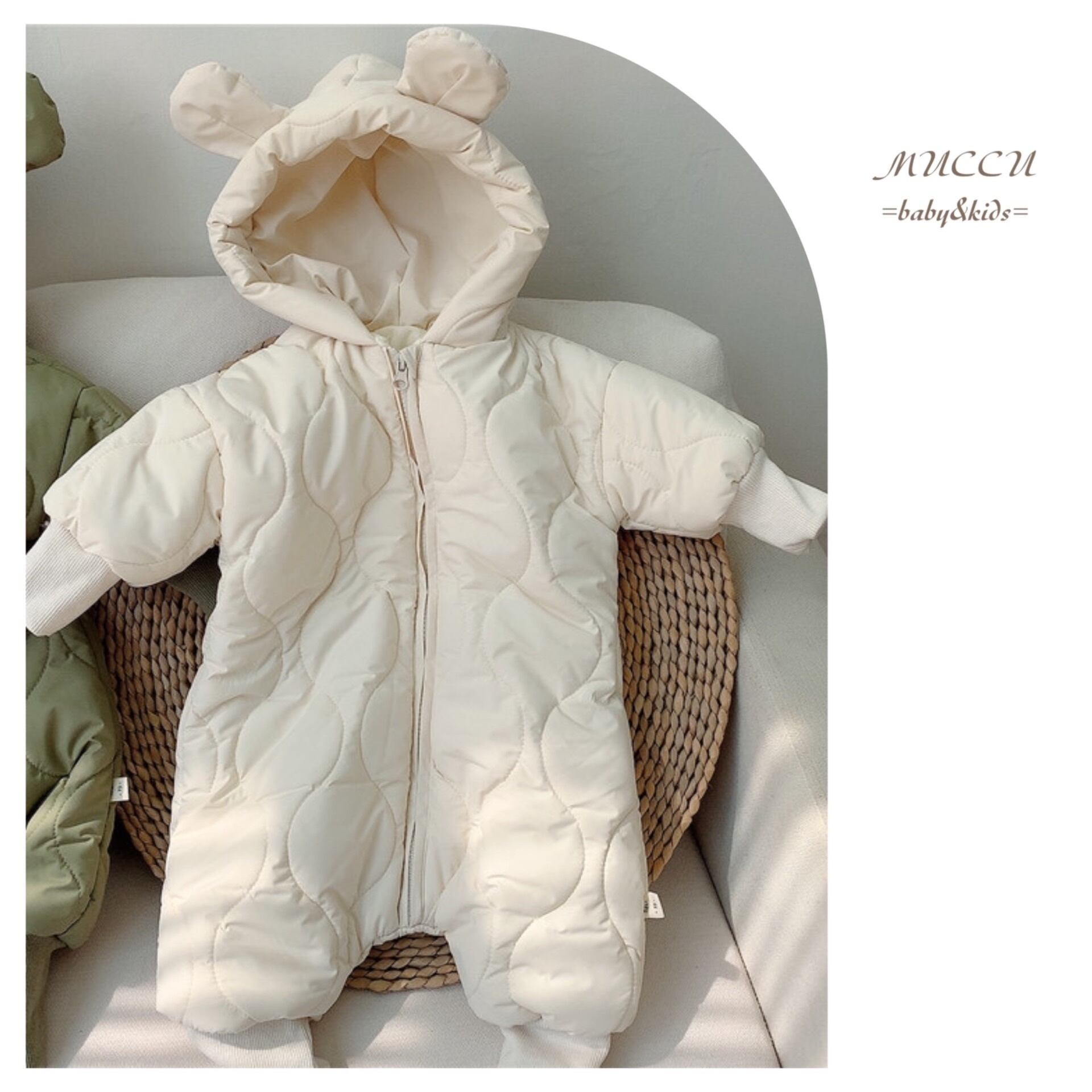 送料無料!【予約販売】今年も登場!間違いない1枚 クマ耳 ジャンプスーツ 66cm〜90cm 男の子 女の子 兄弟 姉妹 双子 ペアコーデ お出掛けコーデ 出産祝い | MUCCU =baby&kids=