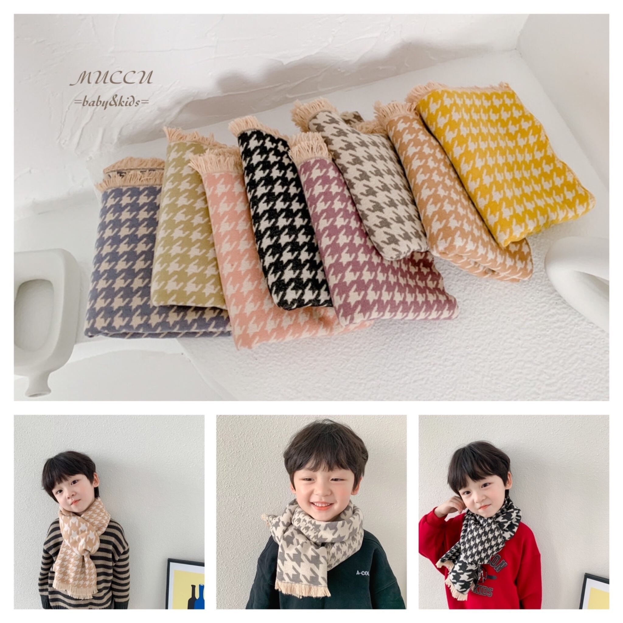 送料無料!【予約販売】おしゃれ 千鳥格子 あったか マフラー 男の子 女の子 兄弟 姉妹 双子 ペアコーデ お出掛けコーデ 出産祝い