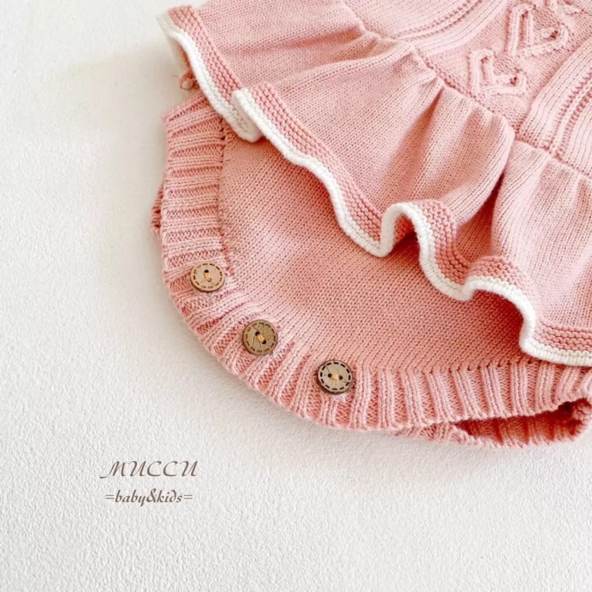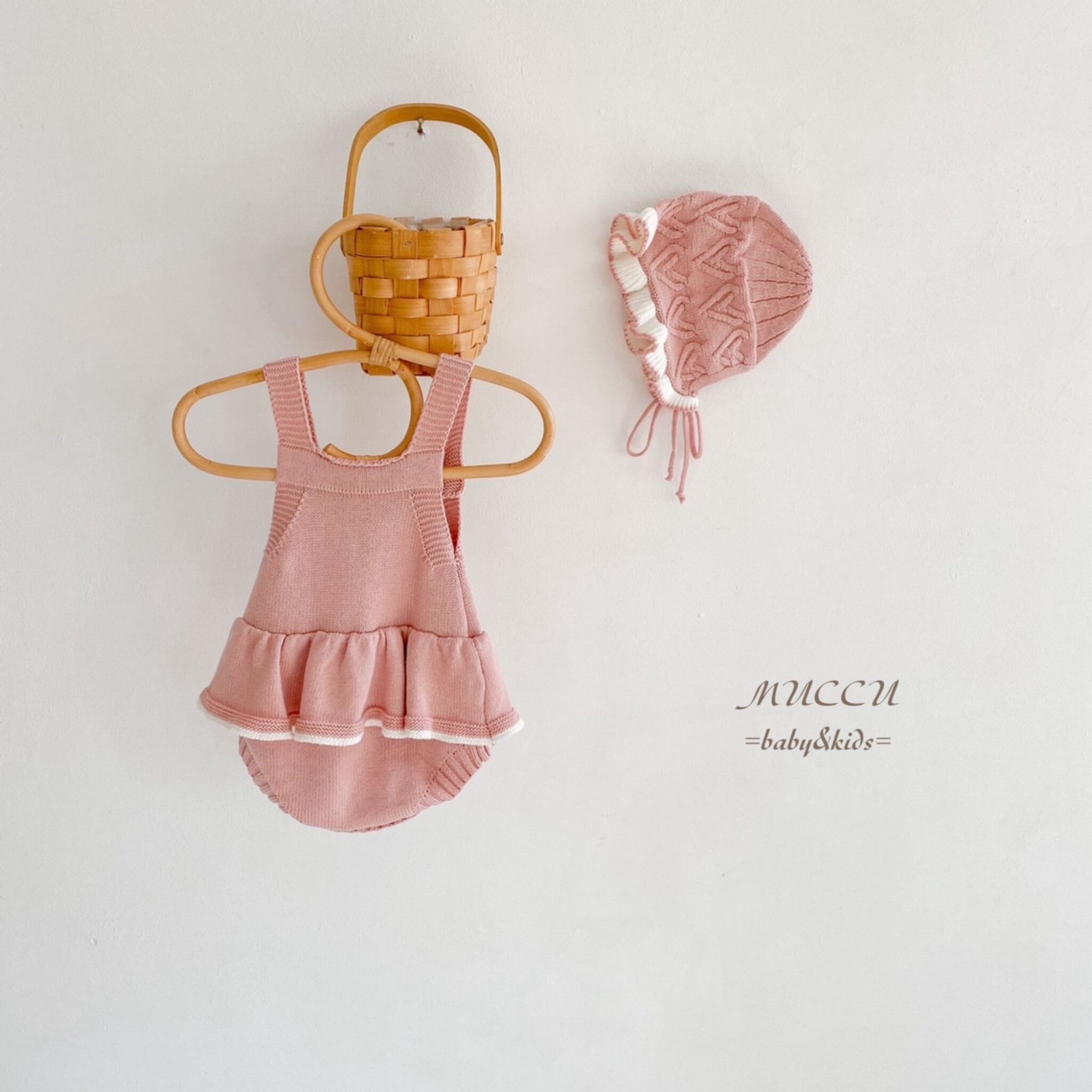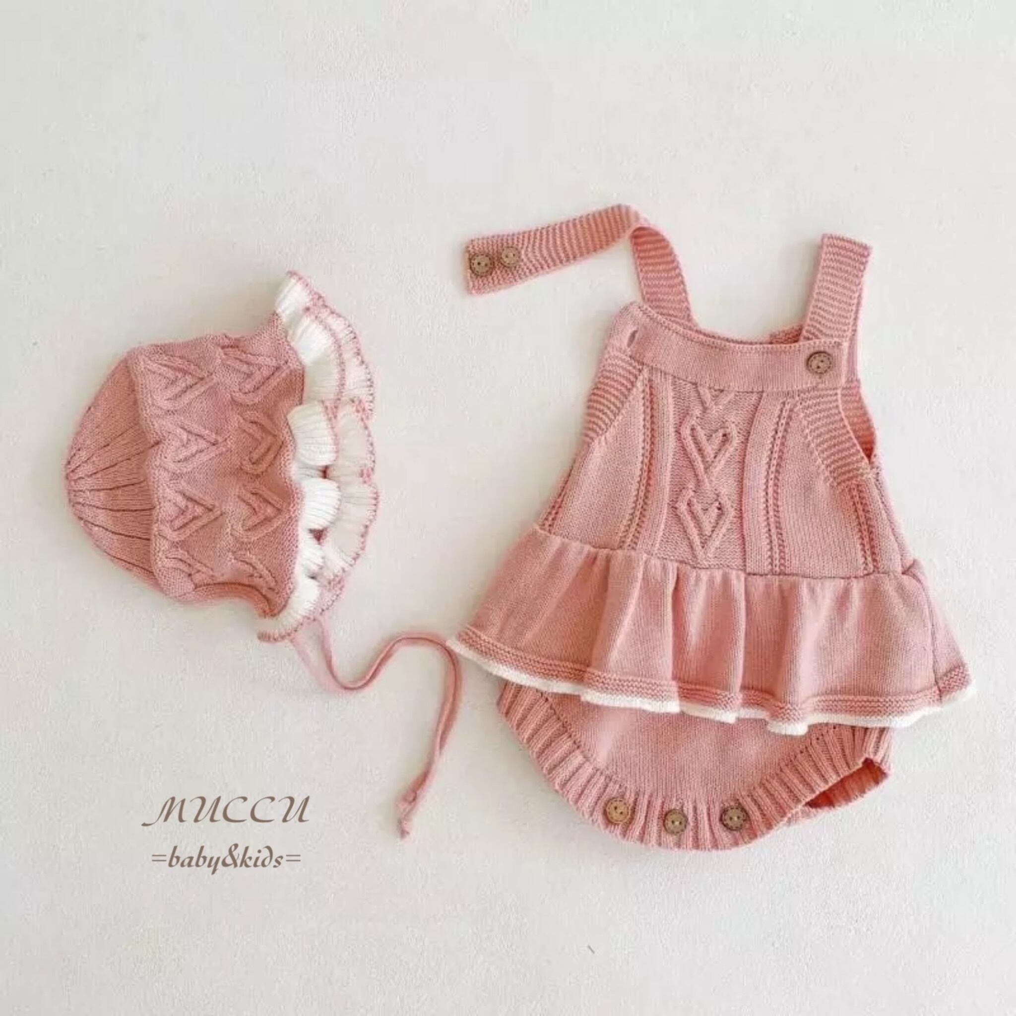 送料無料!【予約販売】可愛いセット♡ ハート ニット ロンパース + ボンネット 66cm〜100cm 男の子 女の子 兄弟 姉妹 双子 ペアコーデ お出掛けコーデ 出産祝い | MUCCU =baby&kids=
