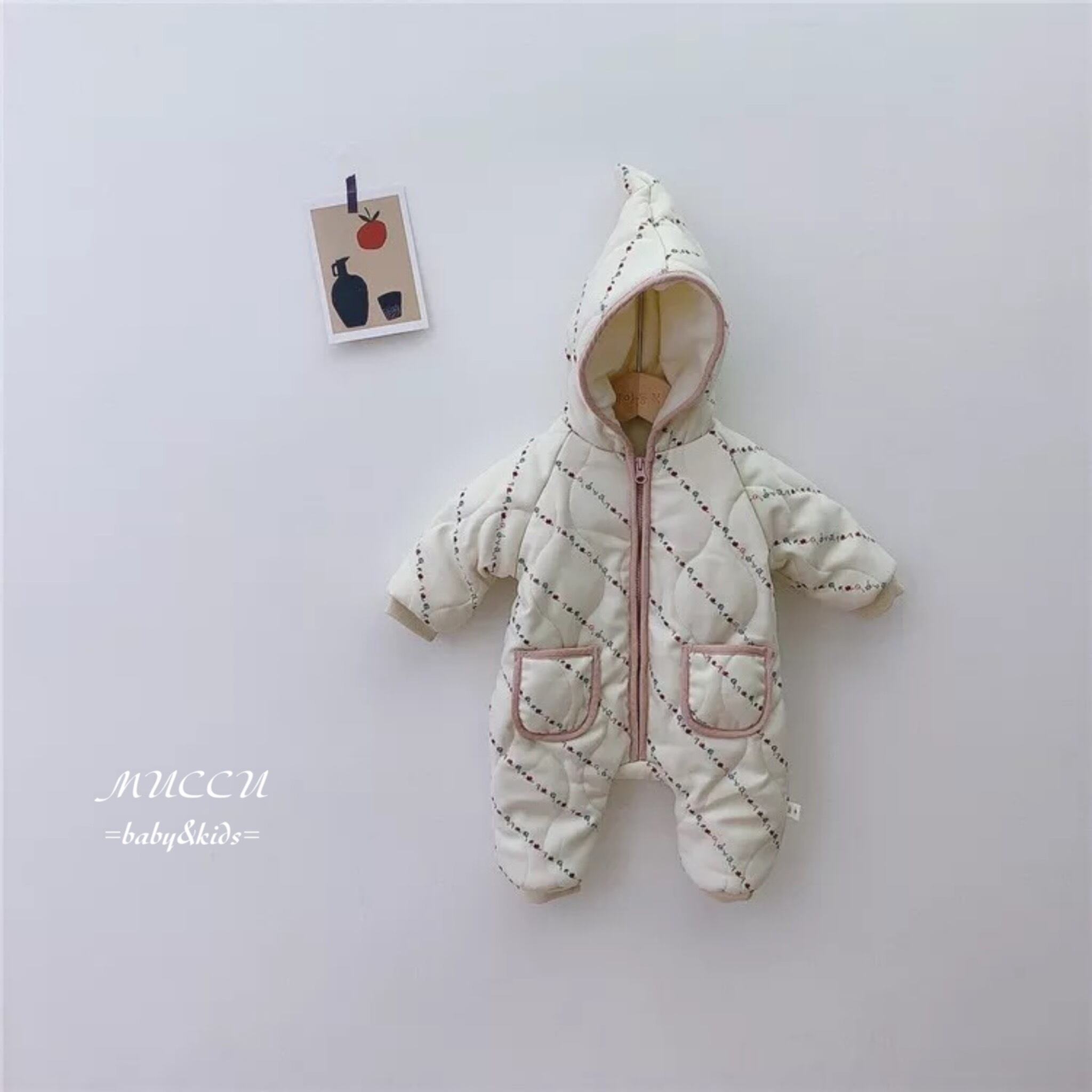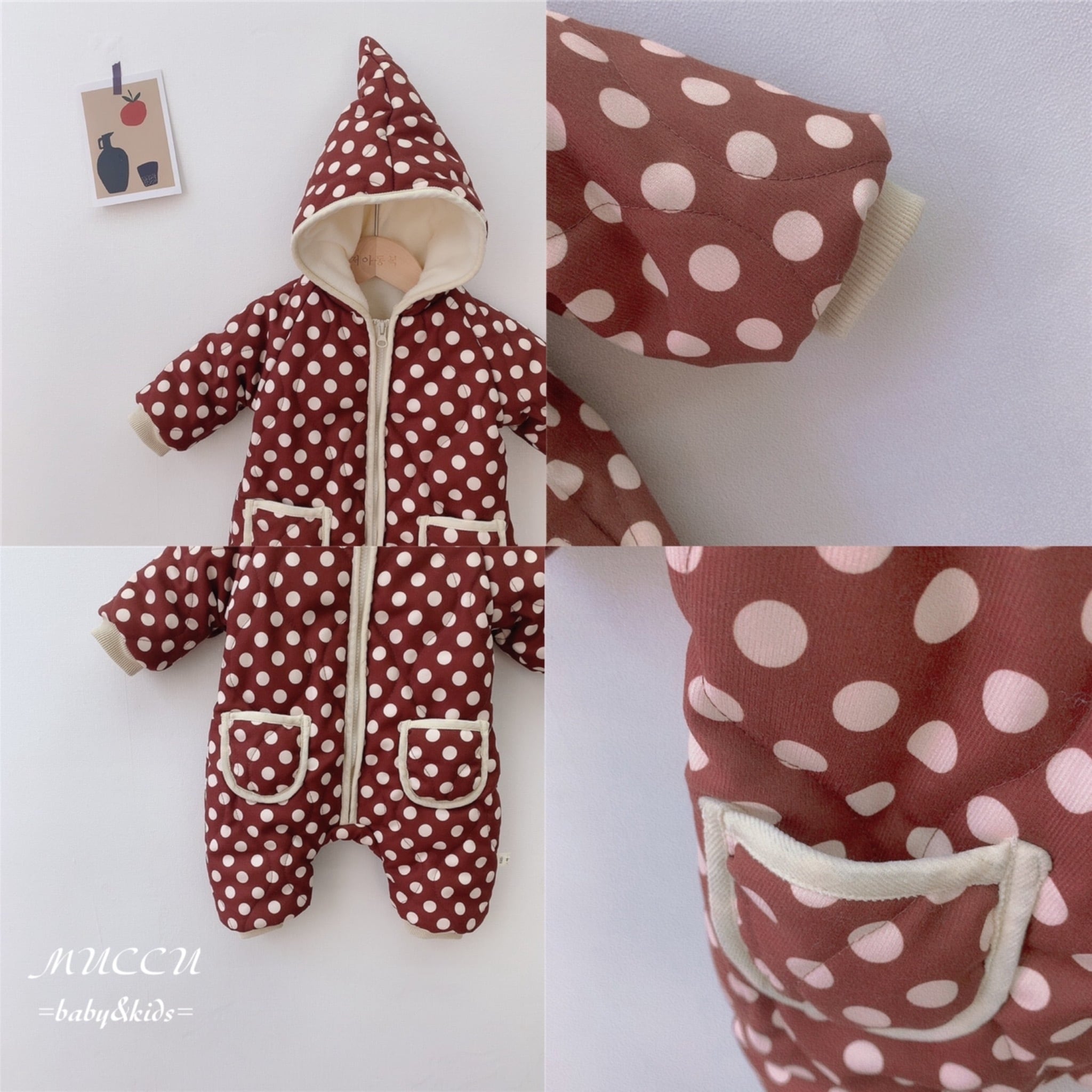 送料無料!【予約販売】裏地暖か〜い♪ とんがりフード ジャンプスーツ 66cm〜90cm 男の子 女の子 兄弟 姉妹 双子 ペアコーデ お出掛けコーデ 出産祝い お誕生日 撮影会 | MUCCU =baby&kids=