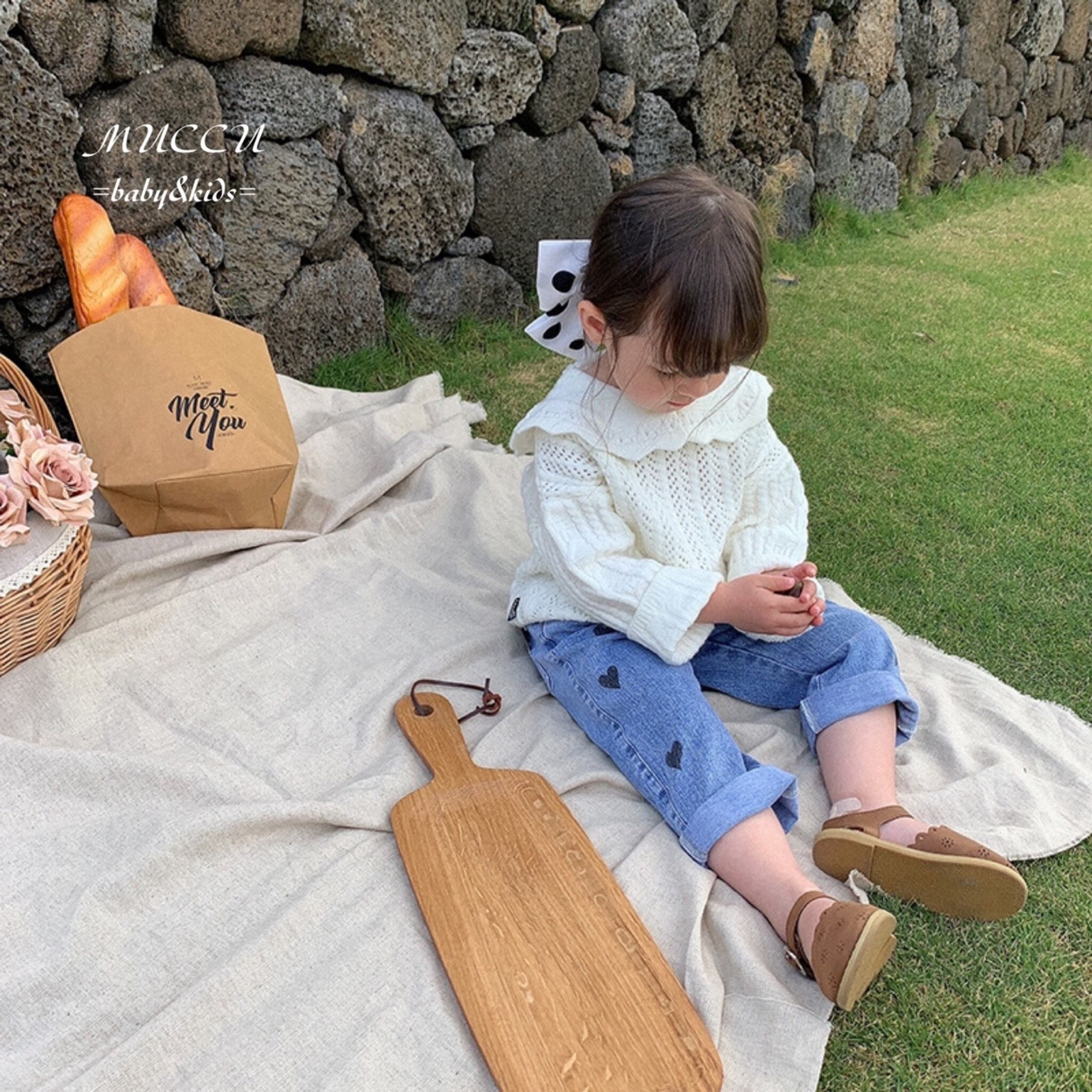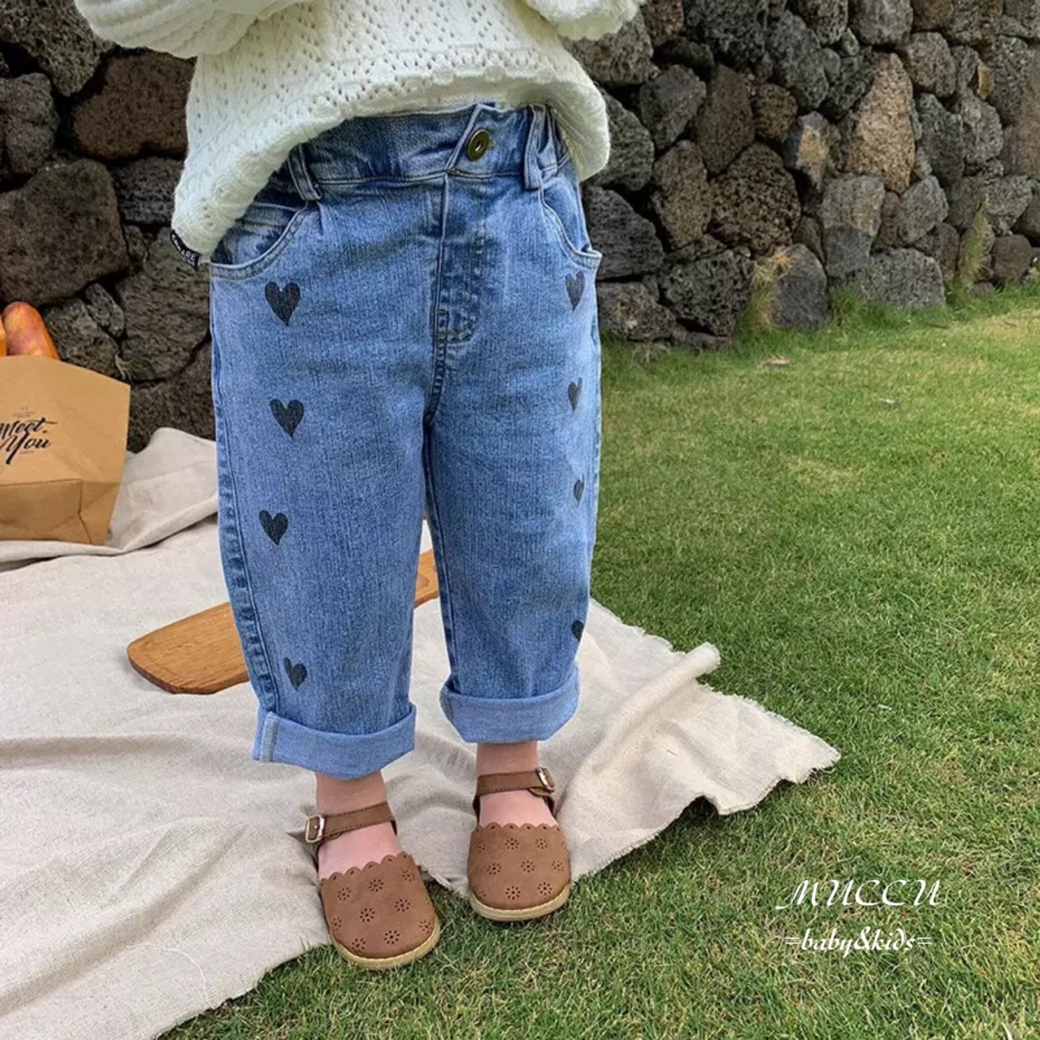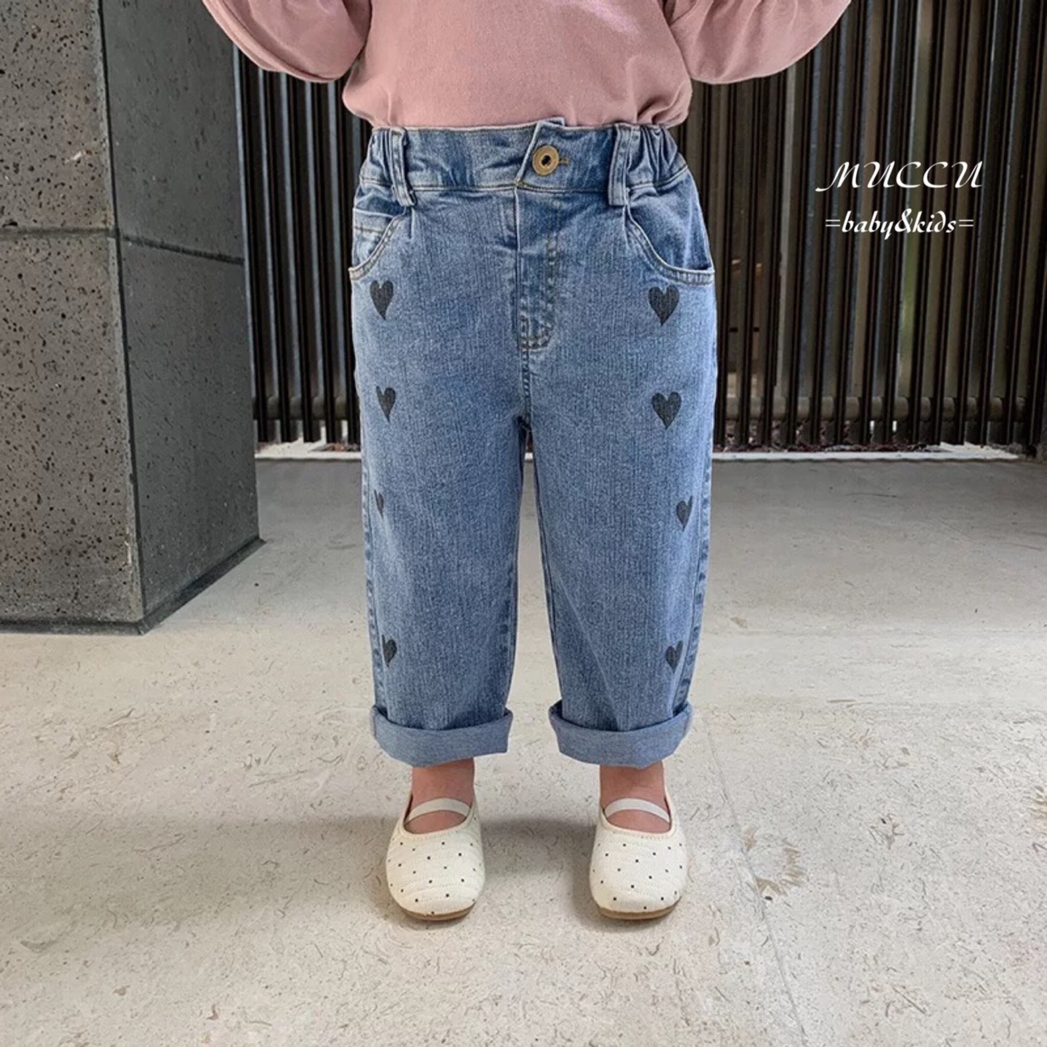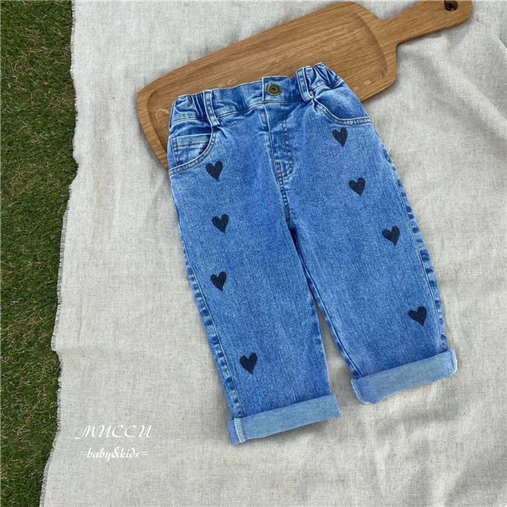 送料無料!【予約販売】可愛い♡ ハート デニム パンツ 80cm〜130cm 女の子 姉妹 双子 ペアコーデ お出掛けコーデ 出産祝い お誕生日 撮影会 キッズ | MUCCU =baby&kids=