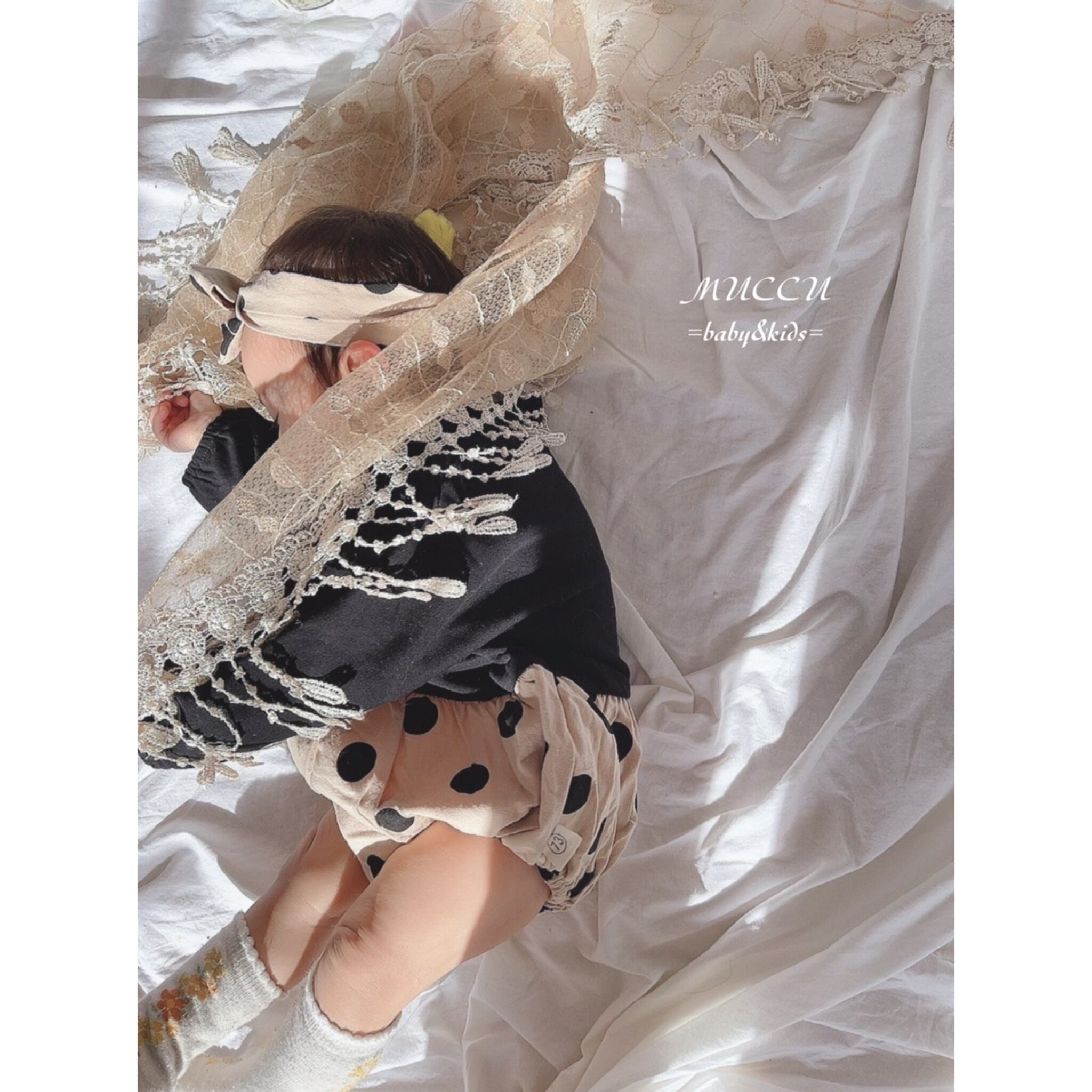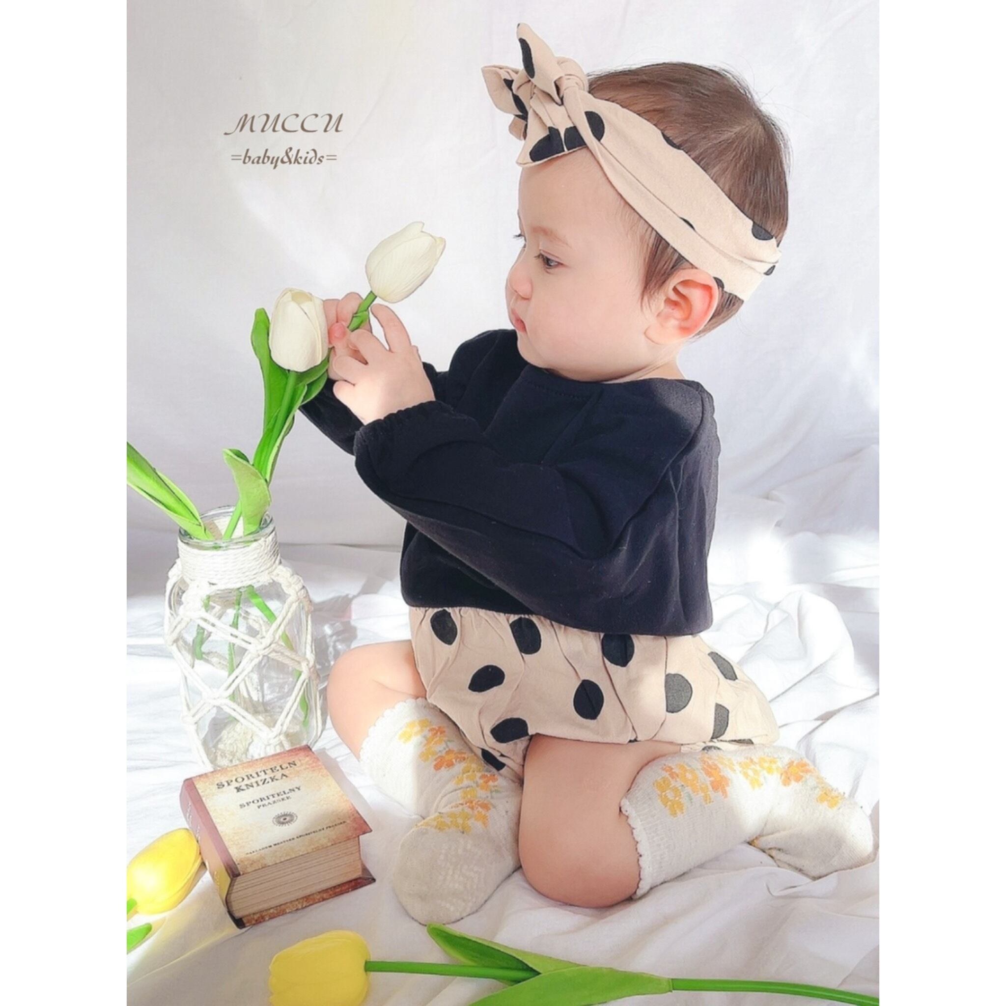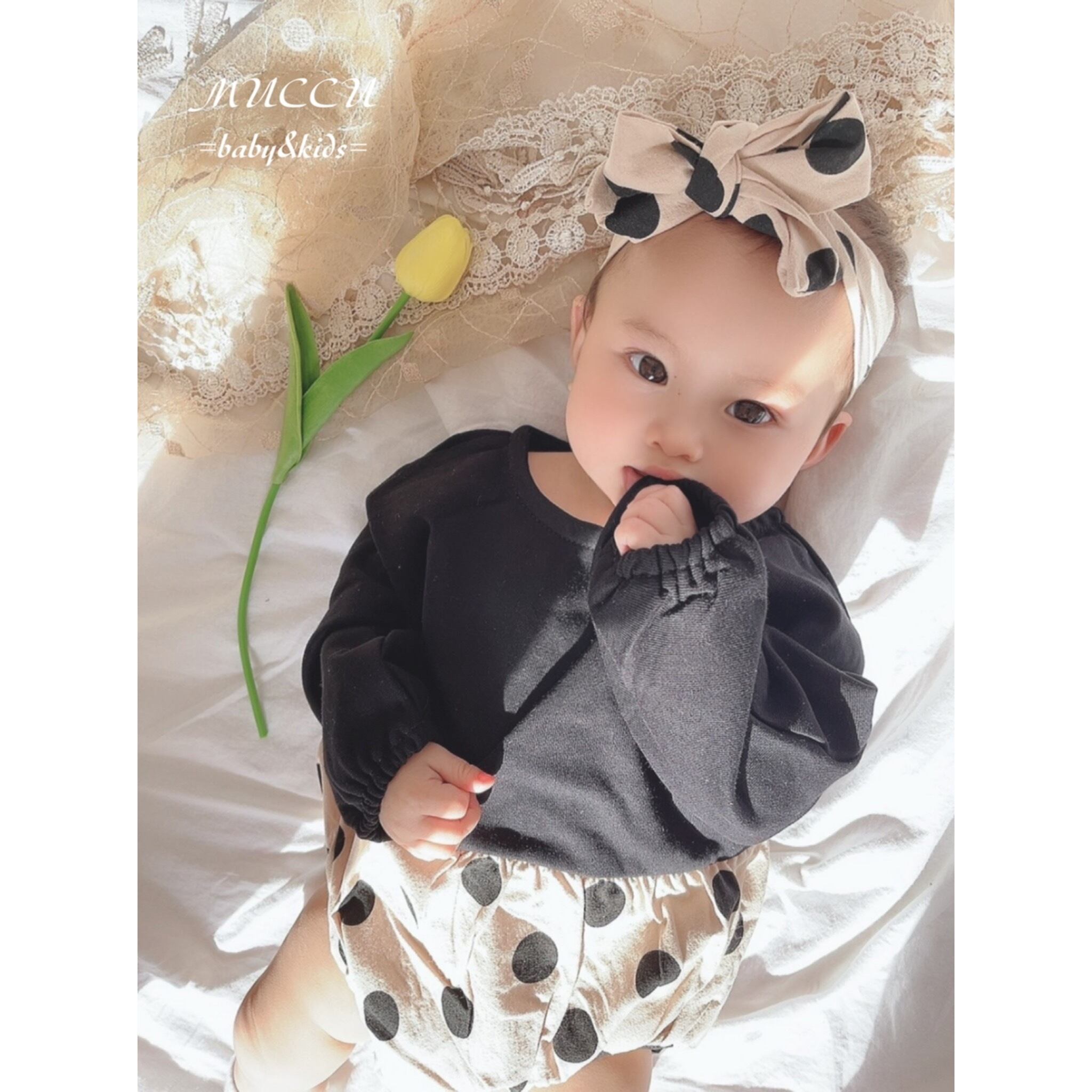 送料無料! 【予約販売】可愛いすぎるセット♡ ドット柄 ロンパース + ヘアバンド セット 66cm〜90cm 男の子 女の子 赤ちゃんペアコーデ 撮影会 お誕生日