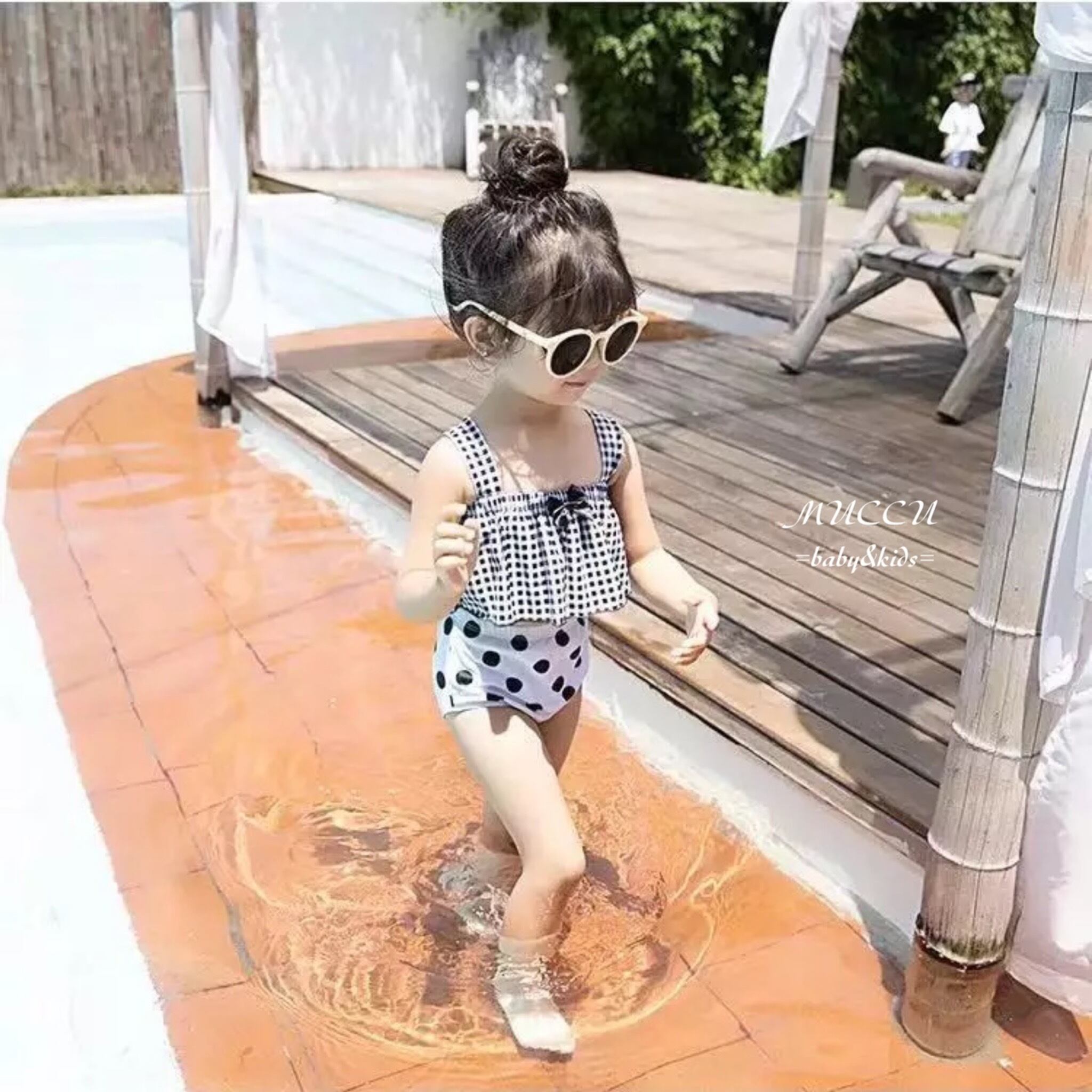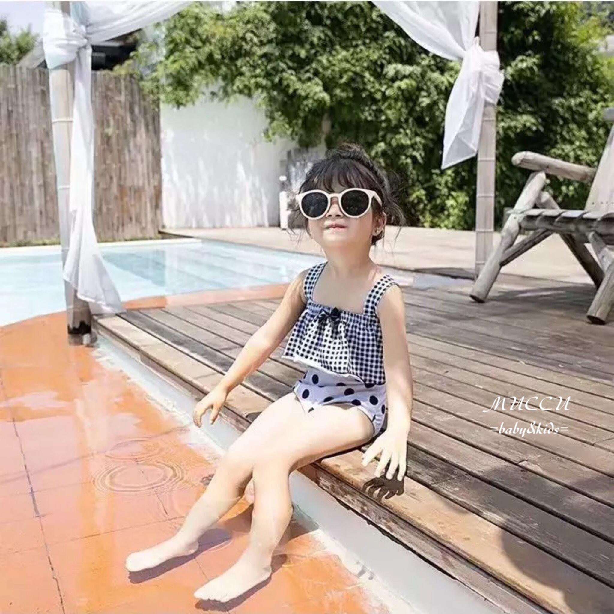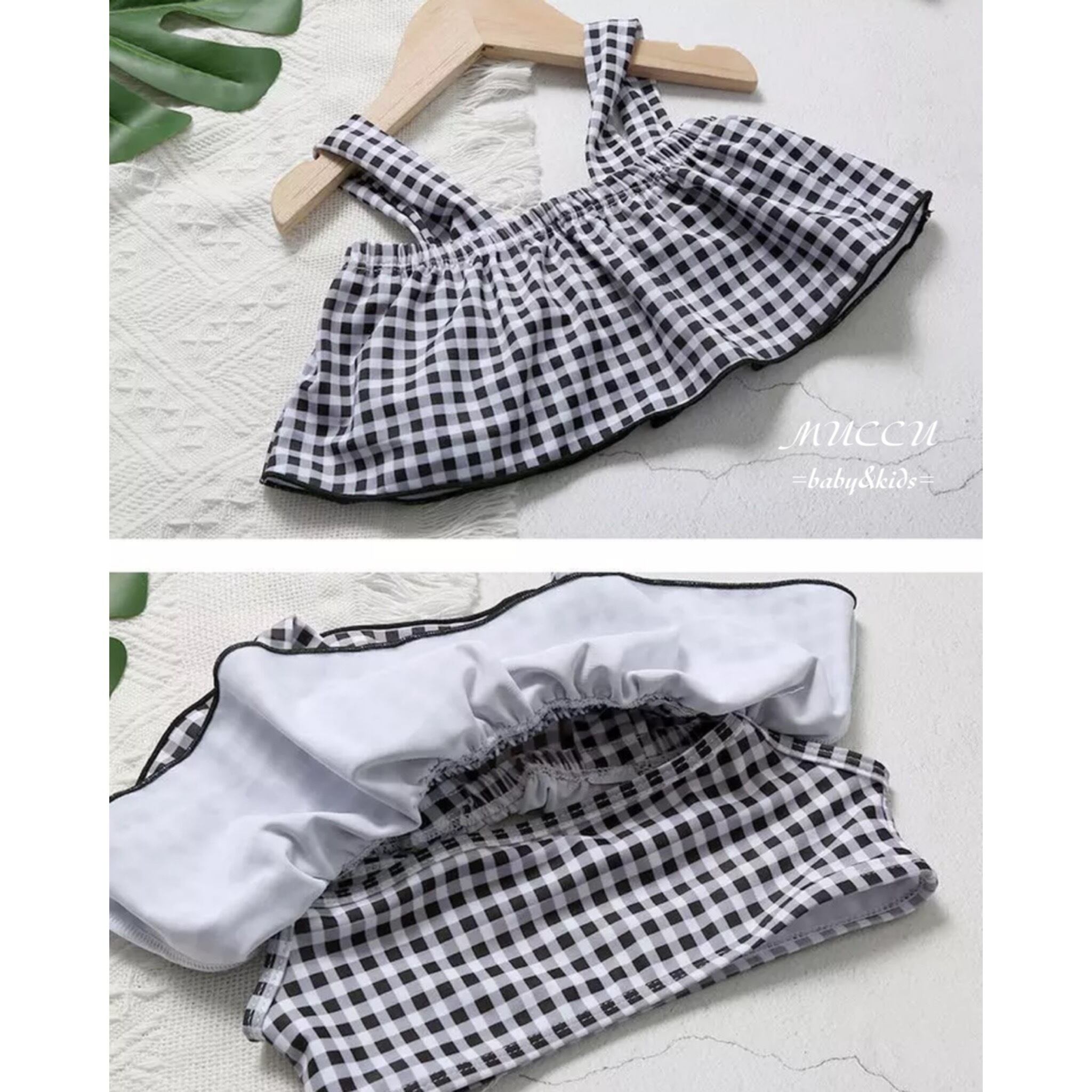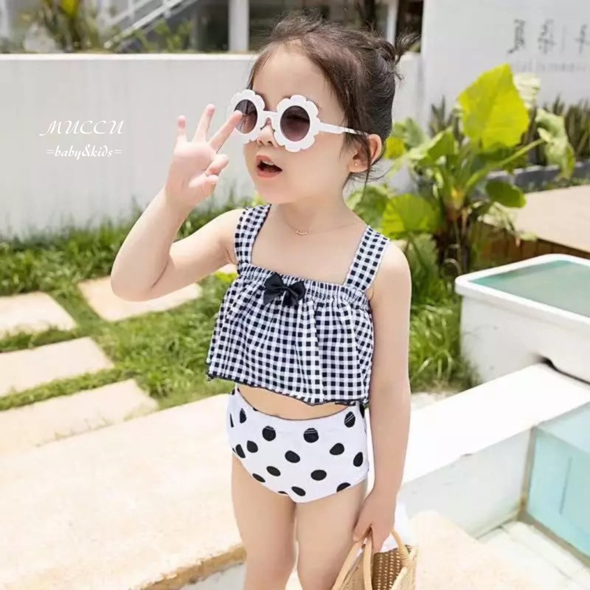 送料無料! 【予約販売】可愛い♡ ドット柄 チェック柄 セパレート 帽子付き 水着 S〜XXL 女の子 姉妹 ペアコーデ 撮影会 お誕生日 姉妹コーデ プール 海水浴 | MUCCU =baby&kids=