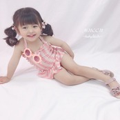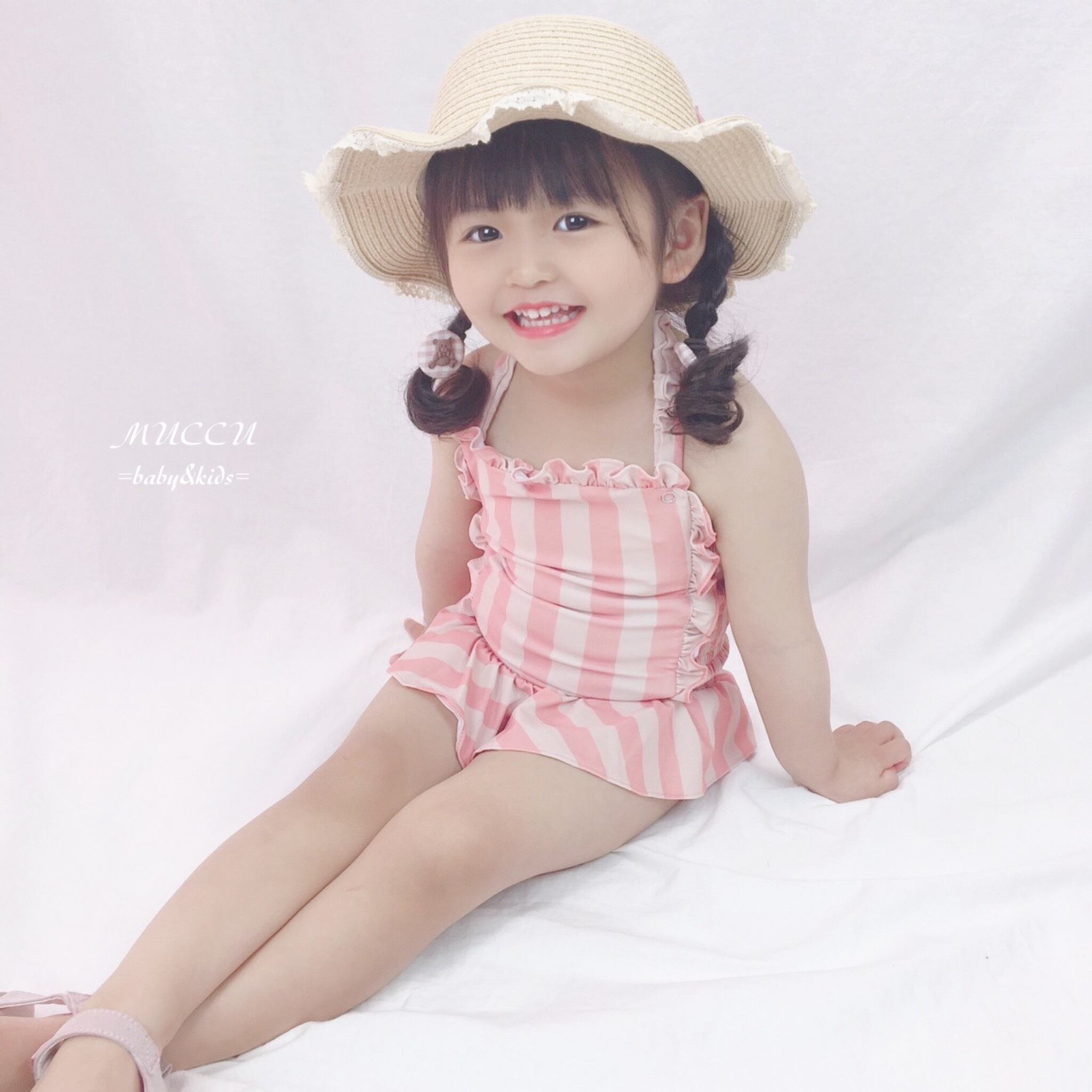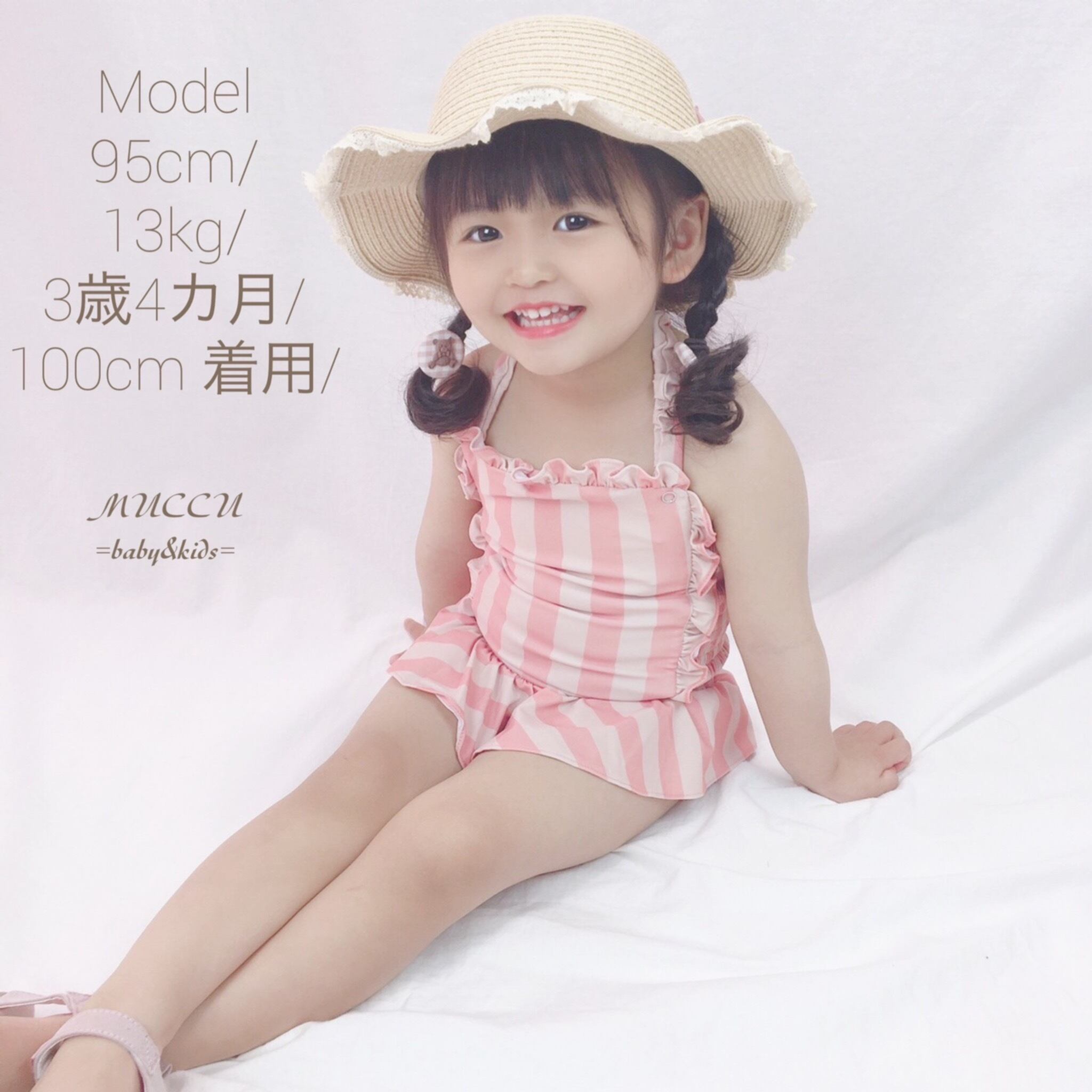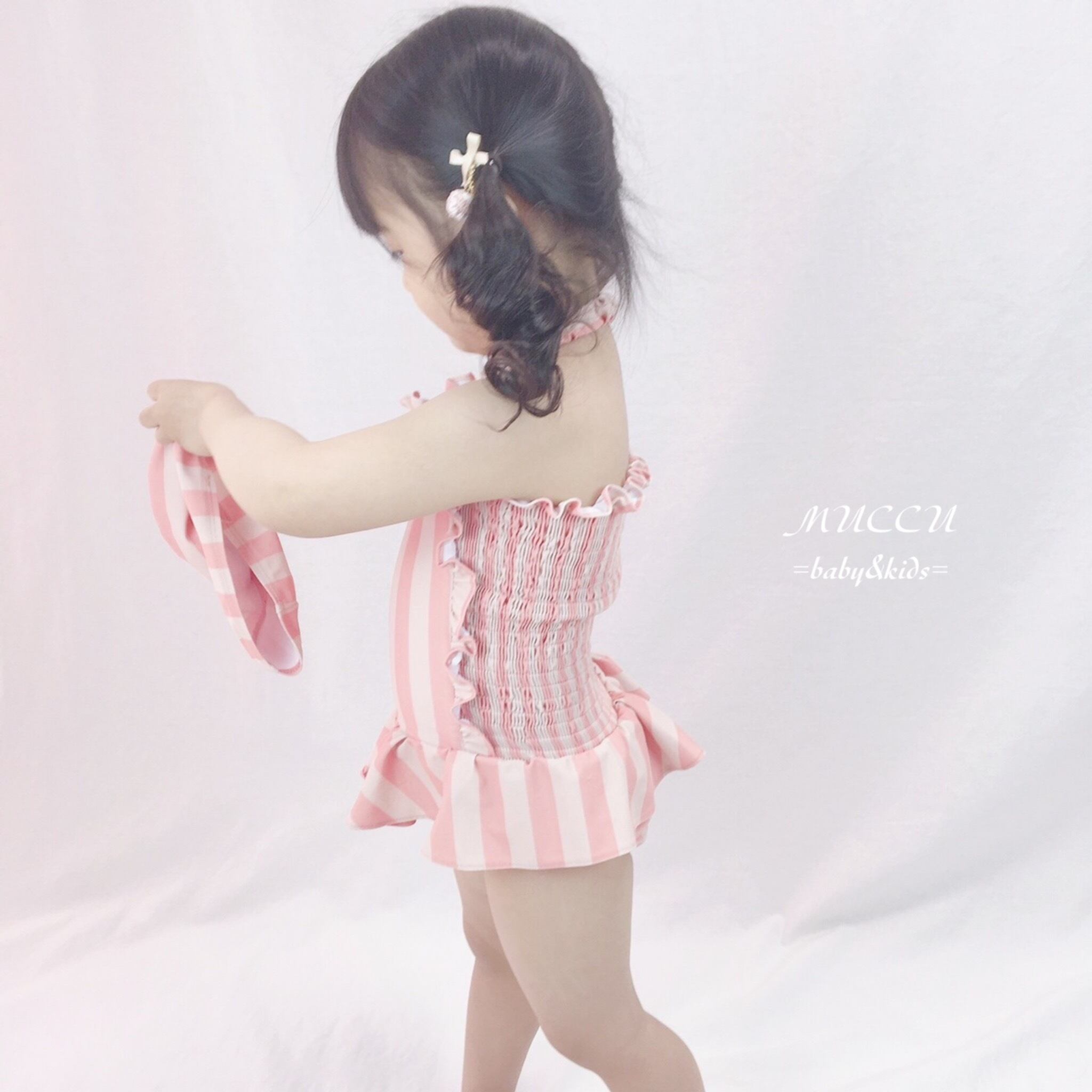 送料無料!【予約販売】可愛いすぎる♡ くすみピンク ホルターネック フリル 水着 スイムキャップ付き 80cm〜130cm 女の子 姉妹 ペアコーデ 撮影会 お誕生日 姉妹コーデ | MUCCU =baby&kids=