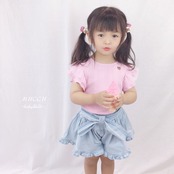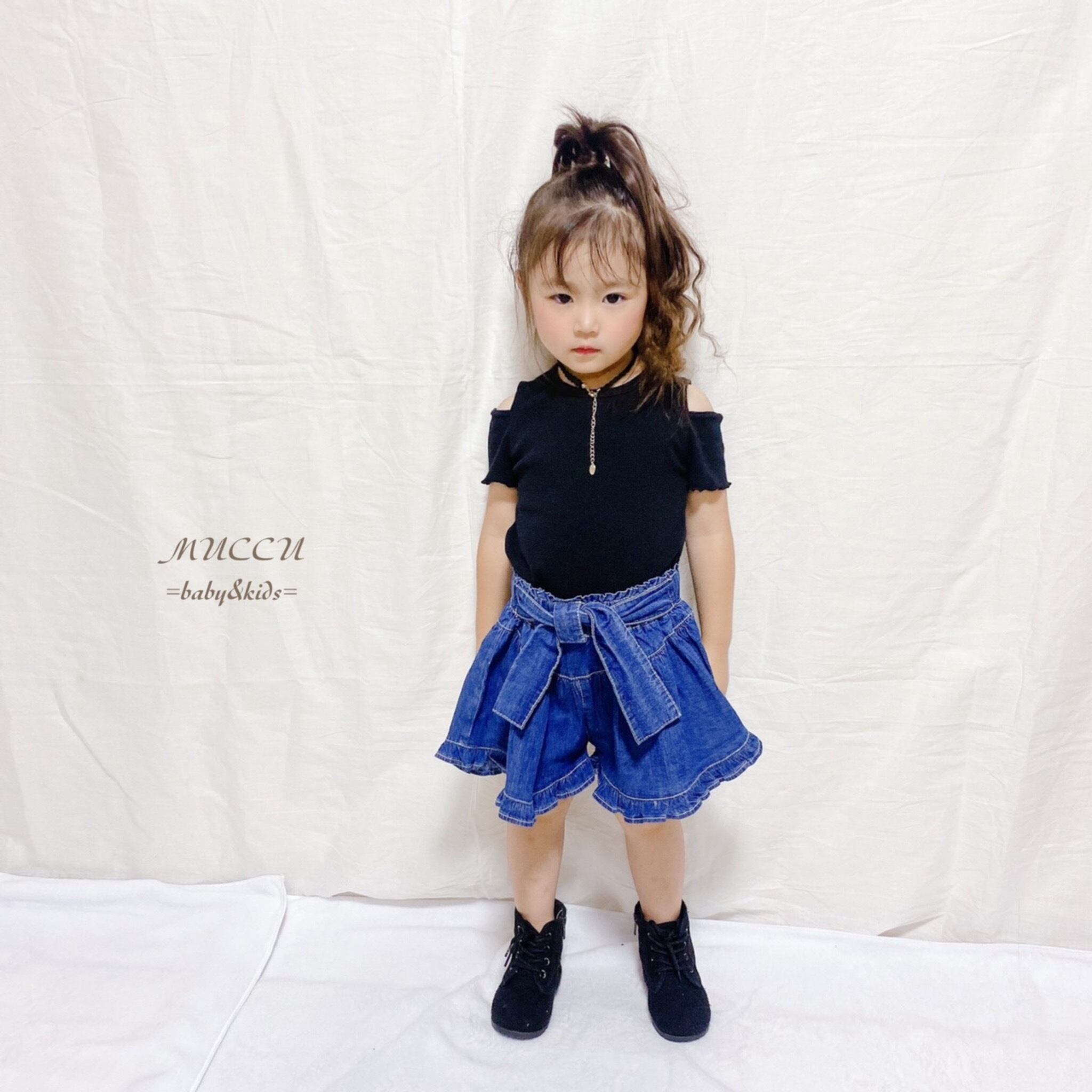 送料無料! 【予約販売】ヘビロテ間違いなし♡ フリル リボン デニム パンツ 80cm〜120cm 女の子 兄弟コーデ 姉妹コーデ ペアコーデ お誕生日