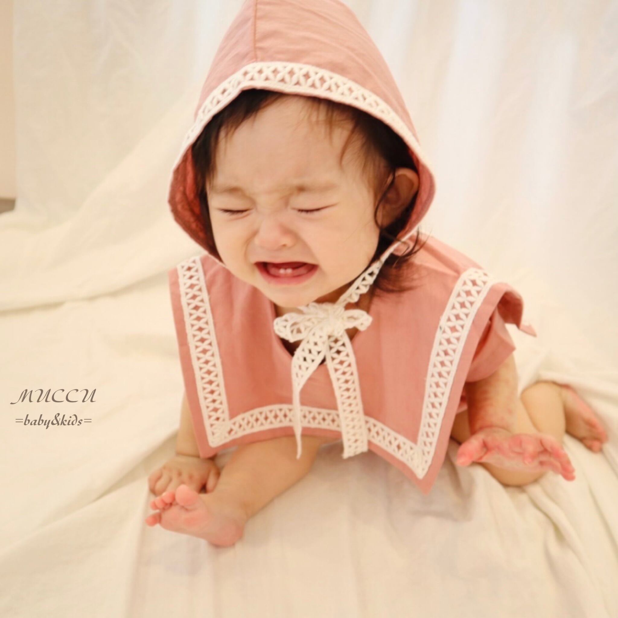 可愛いボンネットがついた