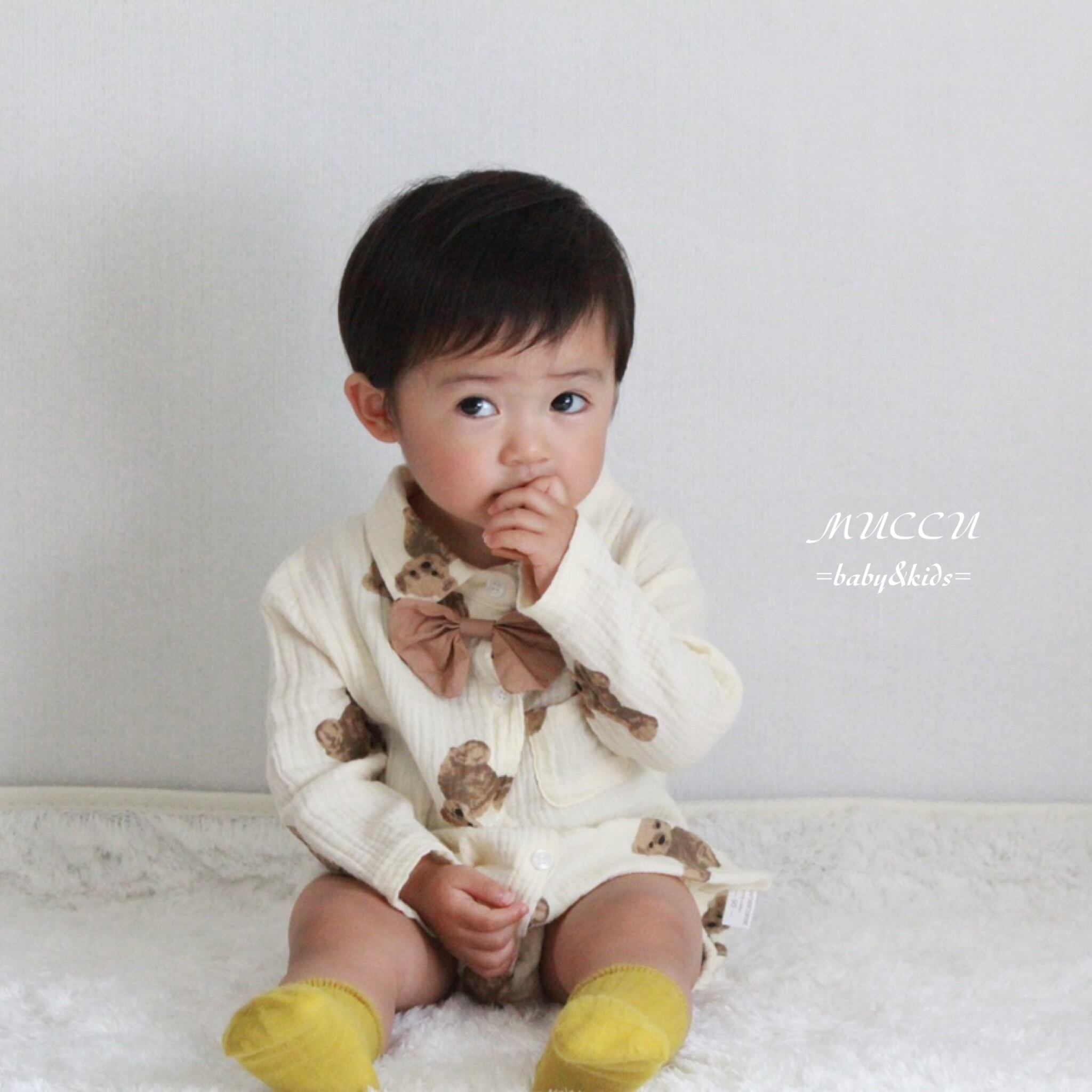 送料無料! 【予約販売】可愛いすぎる♡ 蝶ネクタイ ロンパース 66cm〜100cm 赤ちゃん ハーフバースデー お宮参り 100日祝い 出産祝い 男の子 女の子 お誕生日 | MUCCU =baby&kids=
