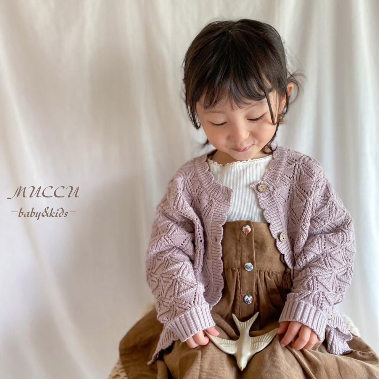 送料無料!【予約販売】可愛い♡ 透かし彫り ニット カーディガン66cm〜100cm 兄弟 姉妹 双子 男の子 女の子 お誕生日 ハーフバースデー 結婚式 出産祝い お揃い ペアコーデ 大人顔負け