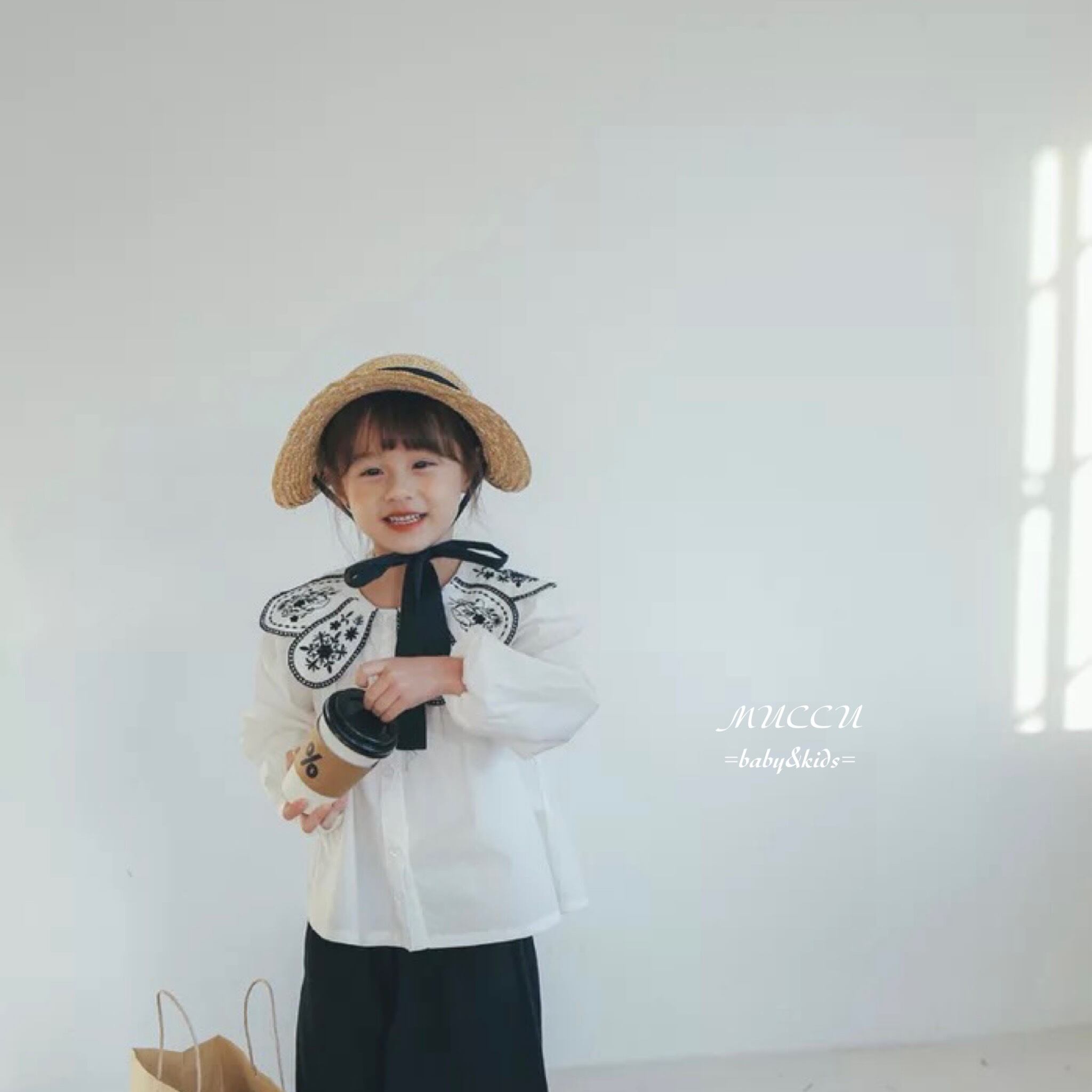 送料無料!【即納】可愛い♡ 花びら襟 刺繍 トップス 120cm ペアコーデ 兄弟 姉妹 男の子 女の子 お誕生日 ハーフバースデー 出産祝い