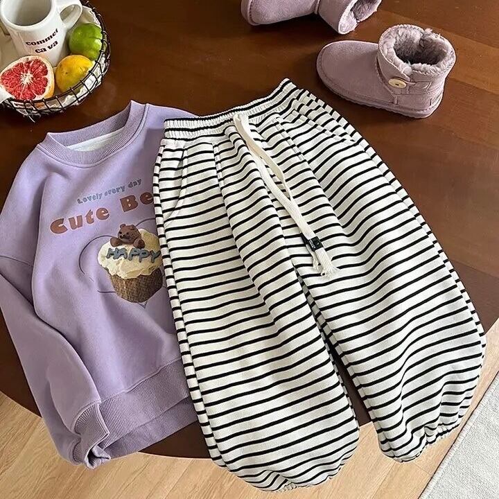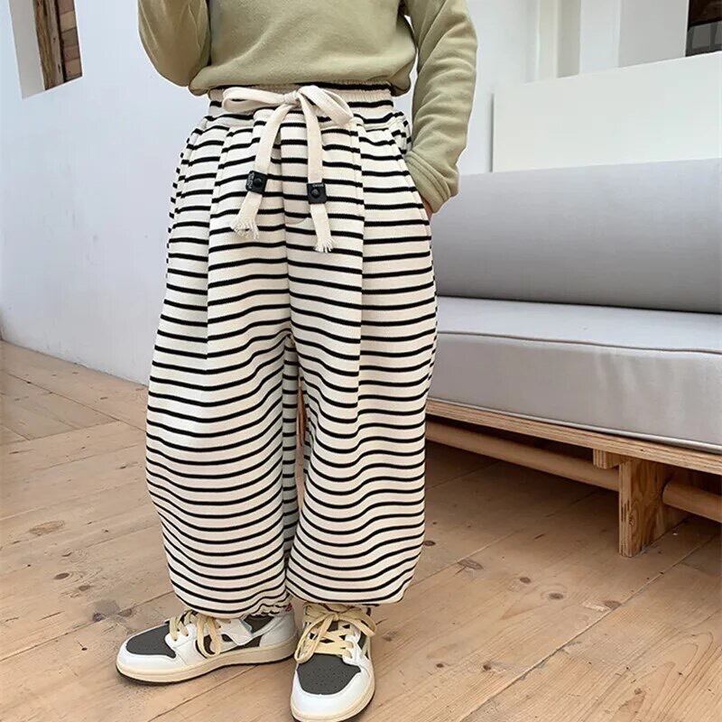 送料無料!冬新作!【予約販売】裏地モコモコ 暖か〜い stripe pants 90cm〜140cm 女の子 男の子 兄弟 姉妹 双子 新作